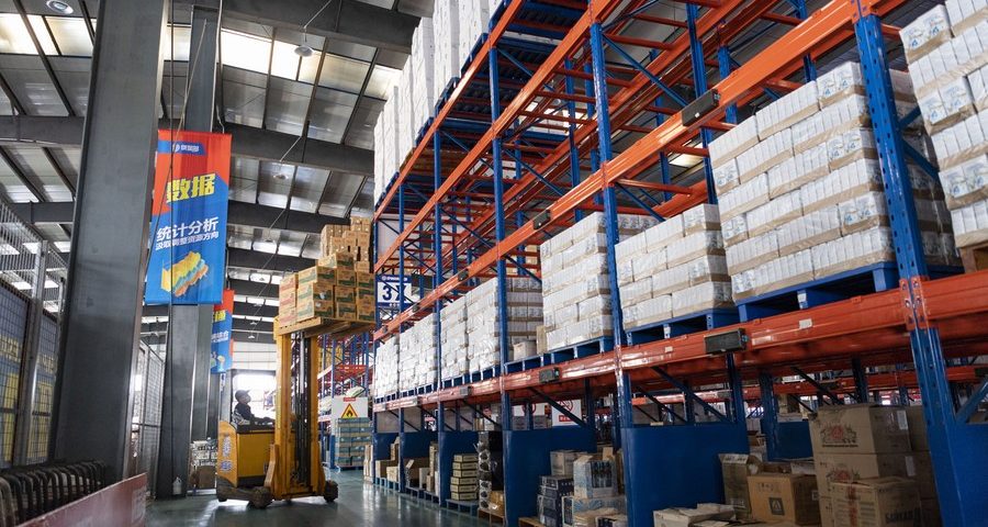 Funcionário carrega mercadorias no centro inteligente de armazém e logística, no parque industrial para comércio eletrônico transfronteiriço de Heihe, na Área Heihe da Zona-Piloto de Livre Comércio da China (Heilongjiang), na Província de Heilongjiang, nordeste da China, em 11 de fevereiro de 2023. Foto: Xie Jianfei