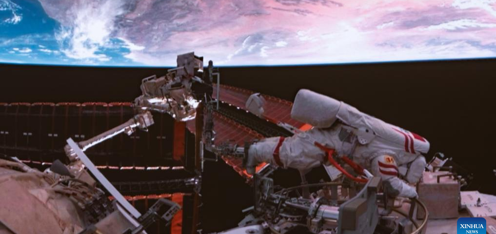 Chen Zhongrui e Wang Jie, encarregados de conduzir as operações de caminhada espacial, concluíram a instalação de dispositivos de proteção contra detritos espaciais e a inspeção de equipamentos externos, informou a CMSA.