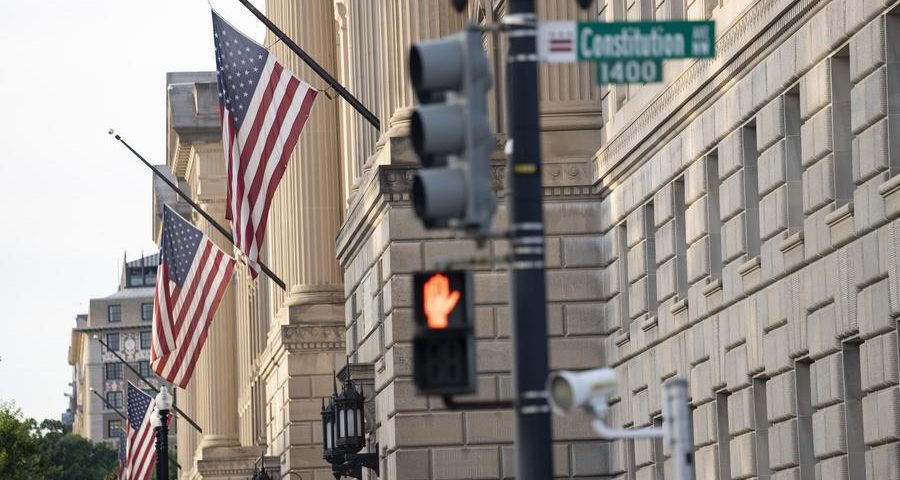 (220708) -- WASHINGTON, D.C., July 8, 2022 (Xinhua) -- Photo taken on July 7, 2022 shows the Commerce Department building in Washington, D.C., the United States. The U.S. trade deficit shrank by 1.3 percent in May after a significant drop in the previous month, hitting the lowest level of the year, the Commerce Department reported on Thursday. (Xinhua/Liu Jie)