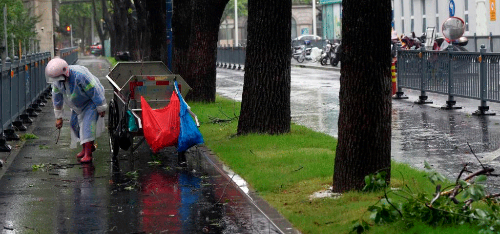 Bebinca, considerado o tufão mais forte a atingir Shanghai em 75 anos, desencadeou vendavais e chuvas torrenciais na cidade. Fotos nas redes sociais mostraram árvores arrancadas e postes de luz derrubados.