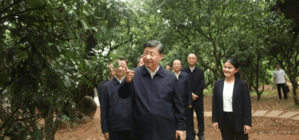 Na aldeia, Xi visitou um pomar de lichia e uma cooperativa de longan e lichia para aprender os esforços locais para desenvolver uma indústria distinta de plantio e promover a vitalização rural.