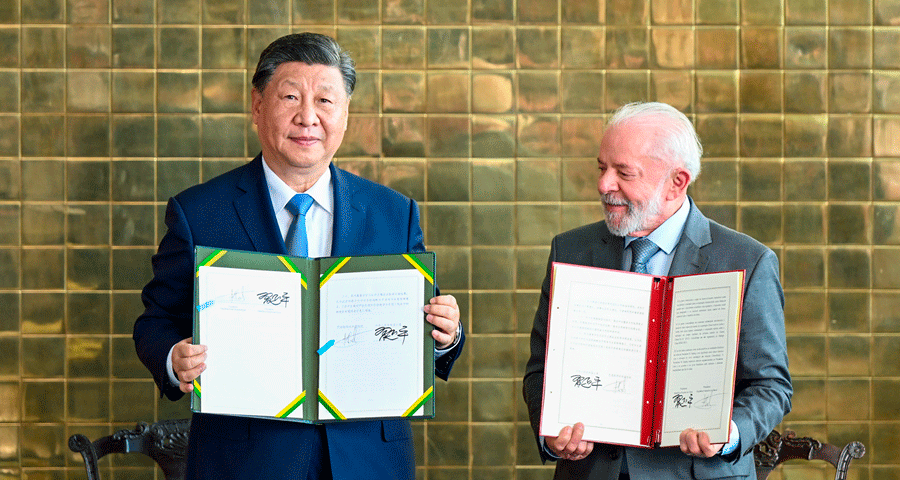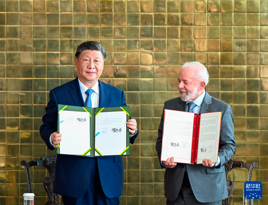 Na manhã de ontem, 20 de novembro, horário local, o presidente da China, Xi Jinping, e o presidente do Brasil, Luiz Inácio Lula da Silva, assinaram e emitiram conjuntamente em Brasília, capital do país latino-americano, a Declaração Conjunta entre a República Popular da China e a República Federativa do Brasil sobre Trabalhar Juntos para Construir uma Comunidade com Futuro Compartilhado China-Brasil para um Mundo Mais Justo e um Planeta Mais Sustentável.