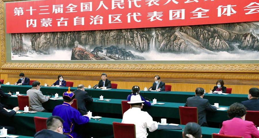 Beijing (Xinhua) – O presidente Xi Jinping, também secretário-geral do Comitê Central do Partido Comunista da China e presidente da Comissão Militar Central, participou na tarde desta sexta-feira de uma deliberação com os deputados da delegação da Região Autônoma da Mongólia Interior, na terceira sessão da 13ª Assembleia Popular Nacional, o mais alto órgão legislativo da China.