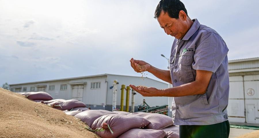 Urumqi – Em meio à colheita de grãos de verão que avança na Região Autônoma Uigur de Xinjiang, no noroeste da China, um dos principais celeiros de grãos do país, a região estabeleceu recordes de rendimento de trigo no país.